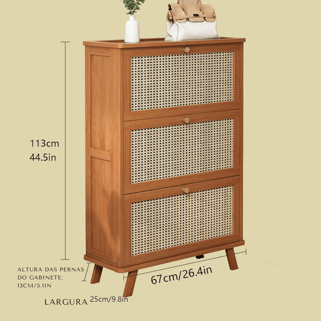 Organize seus calçados de forma elegante. Feita com material sustentável e durável, ela é a escolha ideal para quem busca praticidade, resistência e um toque natural na decoração. Benefícios Design Sustentável: Feita em bambu, material ecológico que alia resistência e respeito ao meio ambiente. Estilo Natural: O acabamento em bambu traz um visual clean e sofisticado, que combina com diversos tipos de ambientes. Facilidade de Montagem: Sistema simples e rápido para montagem, sem necessidade de ferramentas complexas.